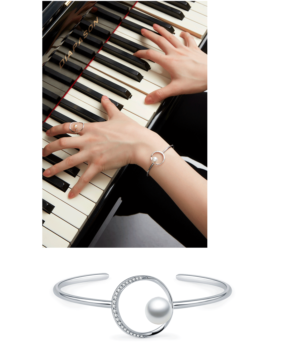 Eclipse日食系列 群镶钻石 白珍珠手镯